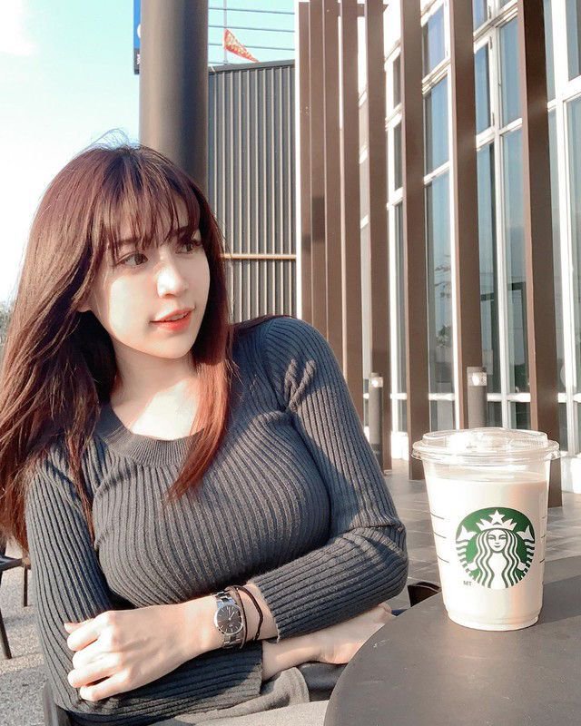 高颜值营养师Yuan喝咖啡自拍衬衫一颗钮扣沒叩好身材完全藏不住